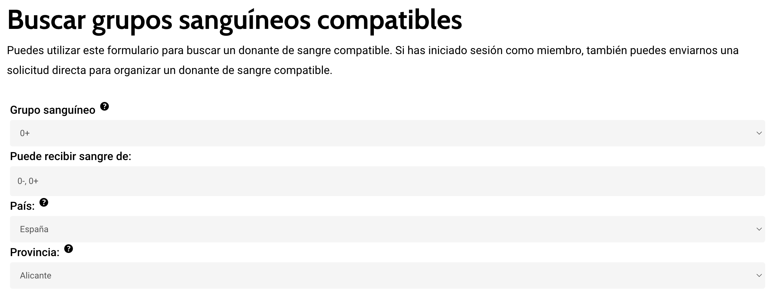 No hay problema. Por supuesto, es una ventaja para nosotros si ya podemos registrar tu grupo sanguíneo para tener una visión confiable de los donantes y receptores potenciales por grupo sanguíneo. Sin embargo, un número considerable de nuestros miembros realmente no conocen su grupo sanguíneo. En este caso, simplemente deja en blanco el campo correspondiente al registrarte. Si necesitas sangre en caso de una emergencia (o incluso en caso de una cirugía programada próxima), el grupo sanguíneo se determinará como prioridad de todos modos. Lo mismo se aplica al donar sangre; allí también se determina el grupo sanguíneo, y después recibirás una tarjeta de grupo sanguíneo con todos los detalles. Por supuesto, te recomendamos que determines tu grupo sanguíneo ocasionalmente (la mayoría de los laboratorios médicos lo hacen), entonces tú y nosotros ya lo sabremos. Por supuesto, también puedes actualizar tus detalles en nuestra base de datos de miembros en cualquier momento.